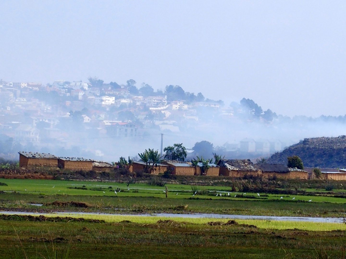 Tananarive n’est pas une ville où j’ai eu envie de rester longtemps, bien que séjournant dans le très agréable hôtel Sakamanga. Je ne me suis pas sentie en sécurité, dans cette ville enveloppée de nuages de pollution lorsque le vent souffle dans sa direction. L’île de Madagascar est réputée pour son insécurité et cela se ressent fortement à Tananarive pour une vazaha qui essaye de se balader seule dans la ville. Qu’est-ce que qu’une vazaha ? Ce terme désigne les personnes étrangères blanches de peau qui, aux yeux des locaux, sont symbole de richesse et porteuse d’un passé historique douloureux. Difficile de faire un pas sans être abordée par des mamans avec des enfants dans les bras, des groupes d’enfants ou d’adolescents plus ou moins agressifs. Chacun demande de l’argent ou a quelque chose à vendre, provoquant mon retour précipité à l’hôtel sans avoir eu le temps de visiter la ville.