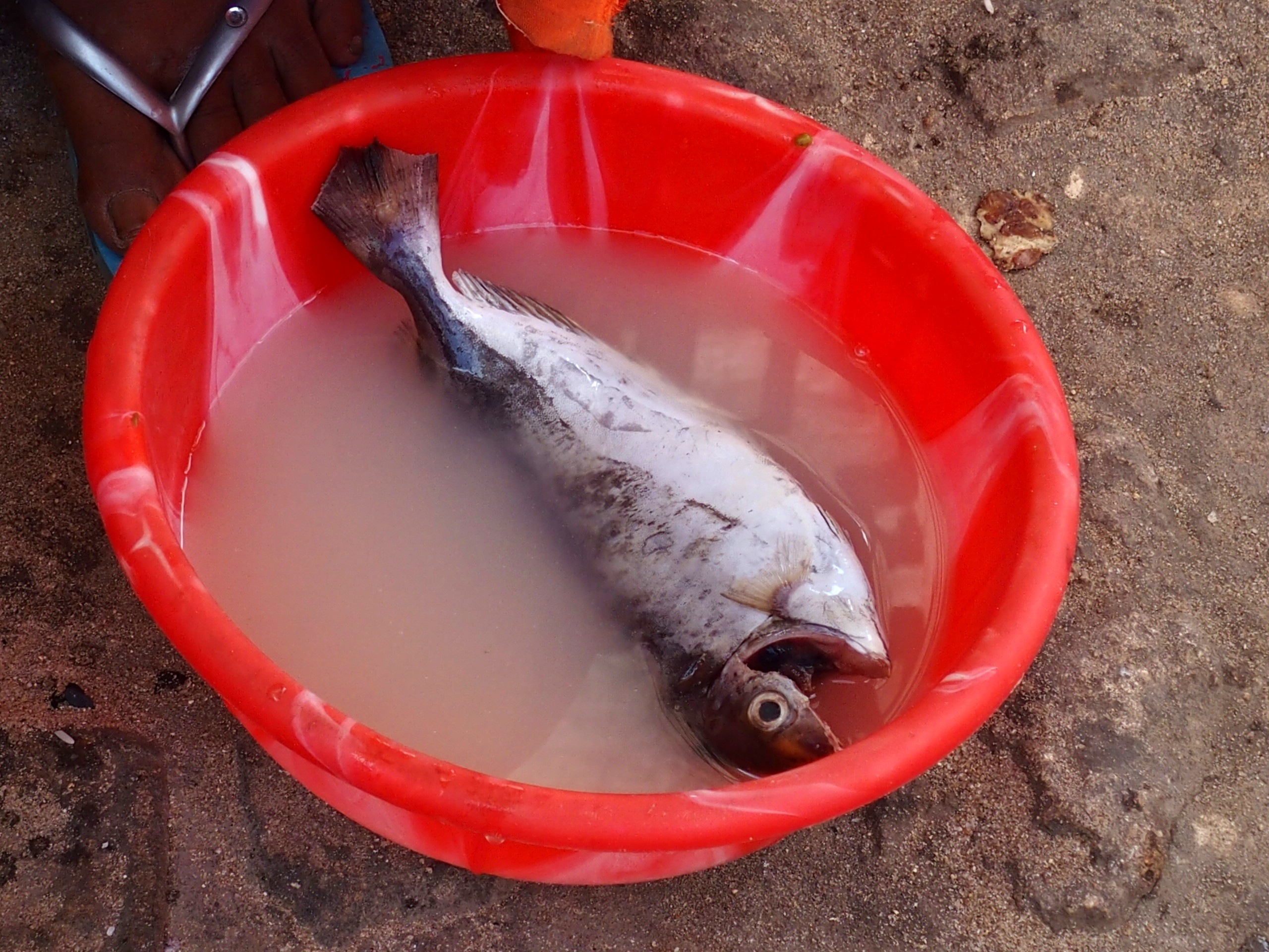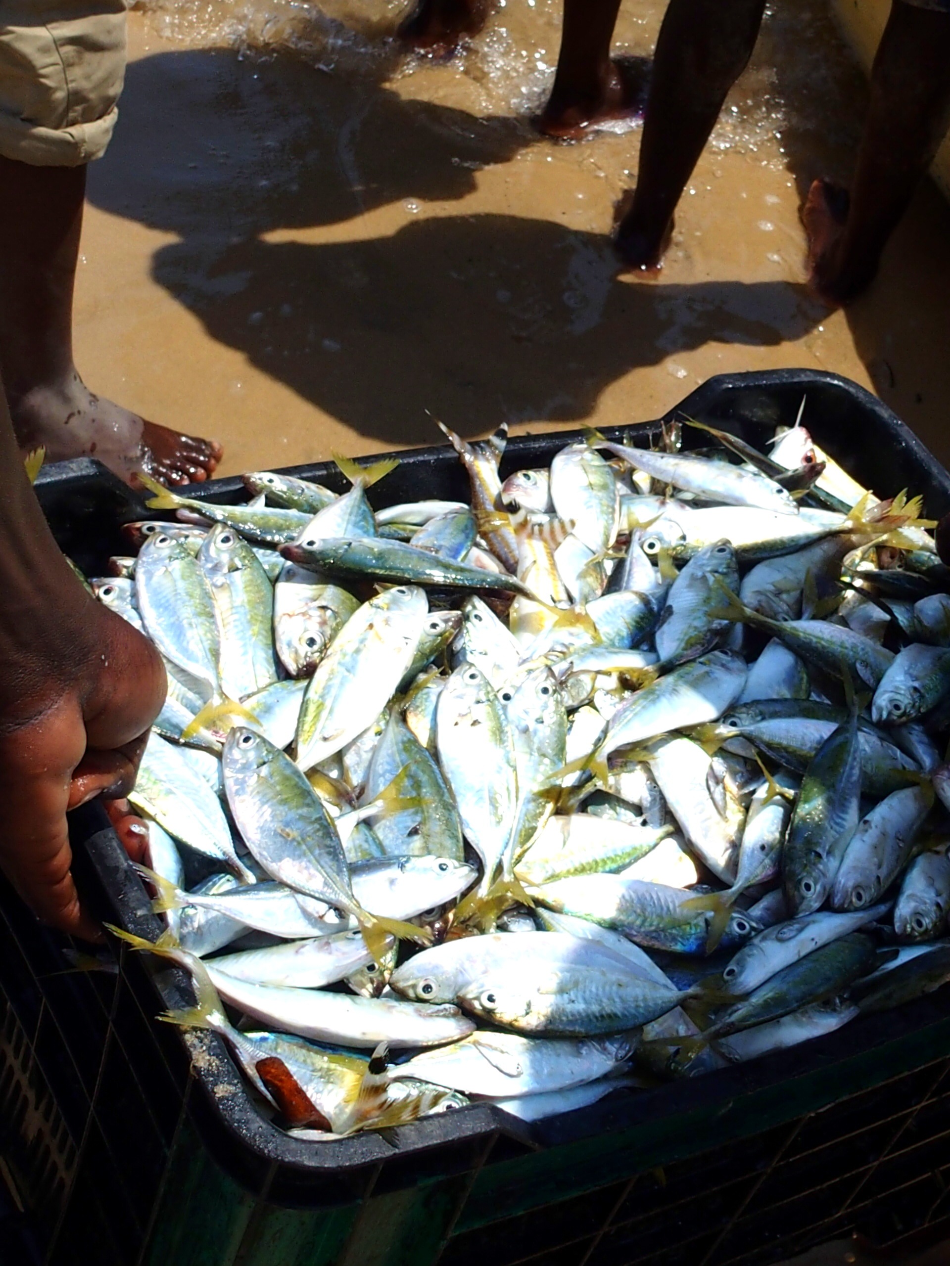 Je pars donc me balader et observe la vie de la population sur la plage. Des enfants qui jouent à un jeu de palets dont je n’ai pas compris la règle, des pêcheurs qui reprisent leurs filets, des femmes qui viennent avec leurs bassines chercher du poisson…