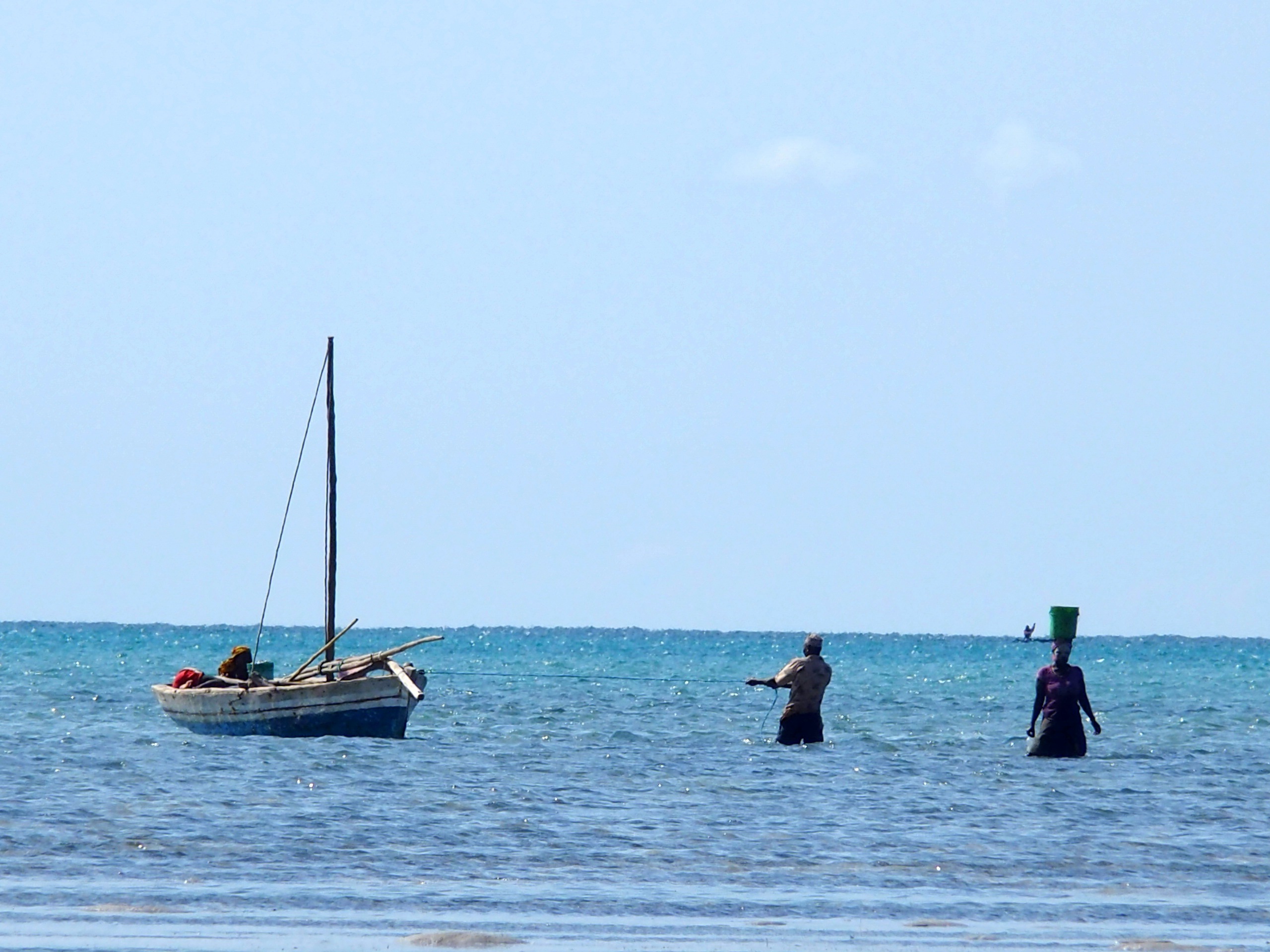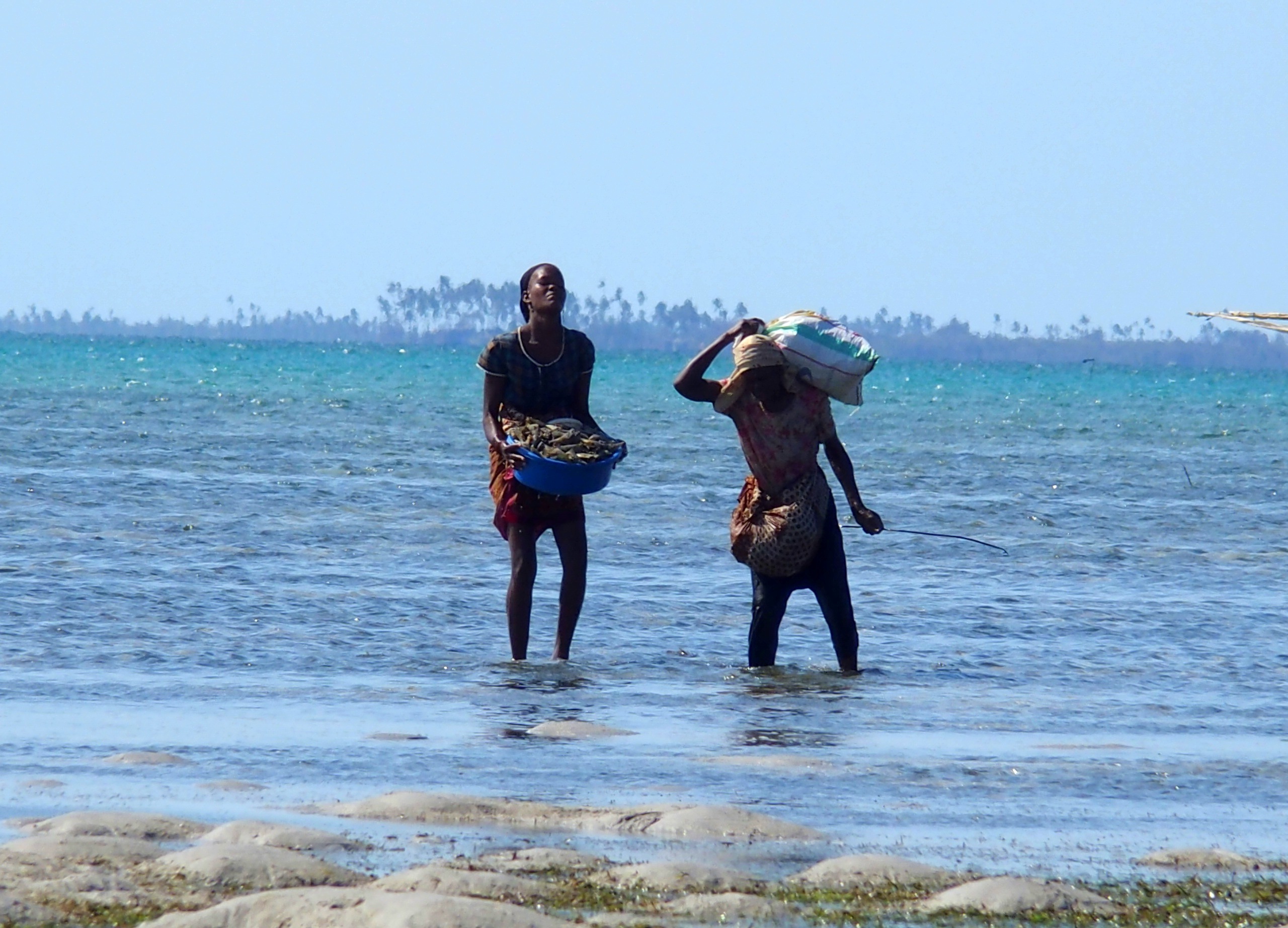 Je regarde la population locale qui ramasse sous un soleil de plomb les coquillages et petits crustacés dans l’espoir de gagner un peu d’argent en les vendant sur les marchés. Ce sont essentiellement des femmes et des enfants qui travaillent sur la plage et elles me font penser aux « cueilleuses » d’algues de Zanzibar. La vie est très difficile au Mozambique où le revenu mensuel moyen par habitant au s’élève à 40 $ (36 €).