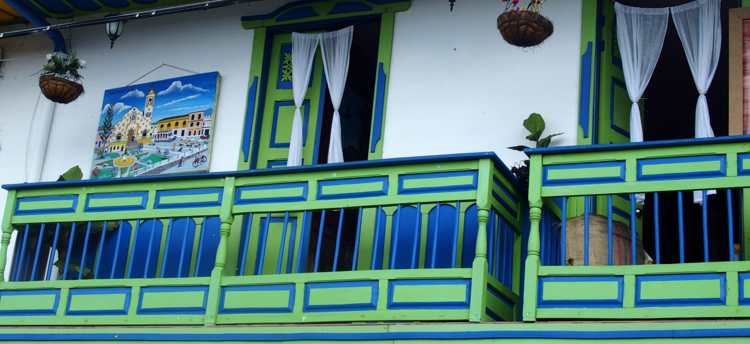 J'ai pris un taxi à l'aéroport de Pereira pour rejoindre mon hostal "La Eliana" dans le village de Salento. Quand le taxi m'a débarquée en fin d'après-midi à l'entrée du village, j'étais un peu perplexe... Salento est située à 2 000 m d’altitude et a la tête dans les nuages en ce mois de janvier. Il fait gris, sombre et froid et je ne retrouve absolument pas l'ambiance chaleureuse et colorée des guides touristiques !