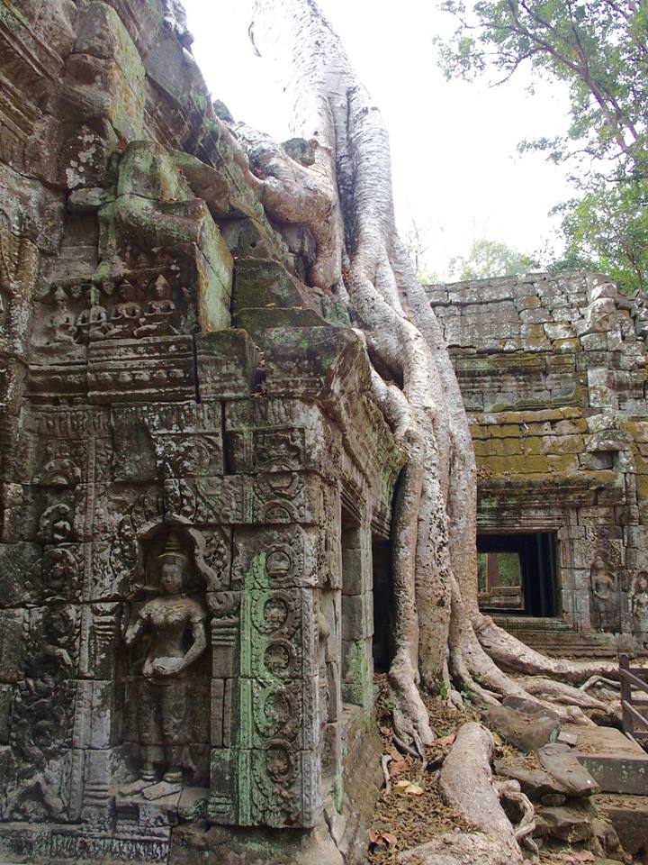 Le Ta Prohm a vraiment été un grand coup de coeur. L'image que j'en garde est celle de temples cachés dans la jungle, envahis par la végétation, avec d'énormes racines qui s'élèvent au milieu des vestiges. Les blocs de pierre et les racines des banians et des fromagers s'entremêlent de façon spectaculaire et entourent les portes et les murs de façon très romantique. Ces scènes naturelles qui ont servi de décor au film Tomb Raider avec Lara Croft, confèrent une ambiance surréaliste au lieu.