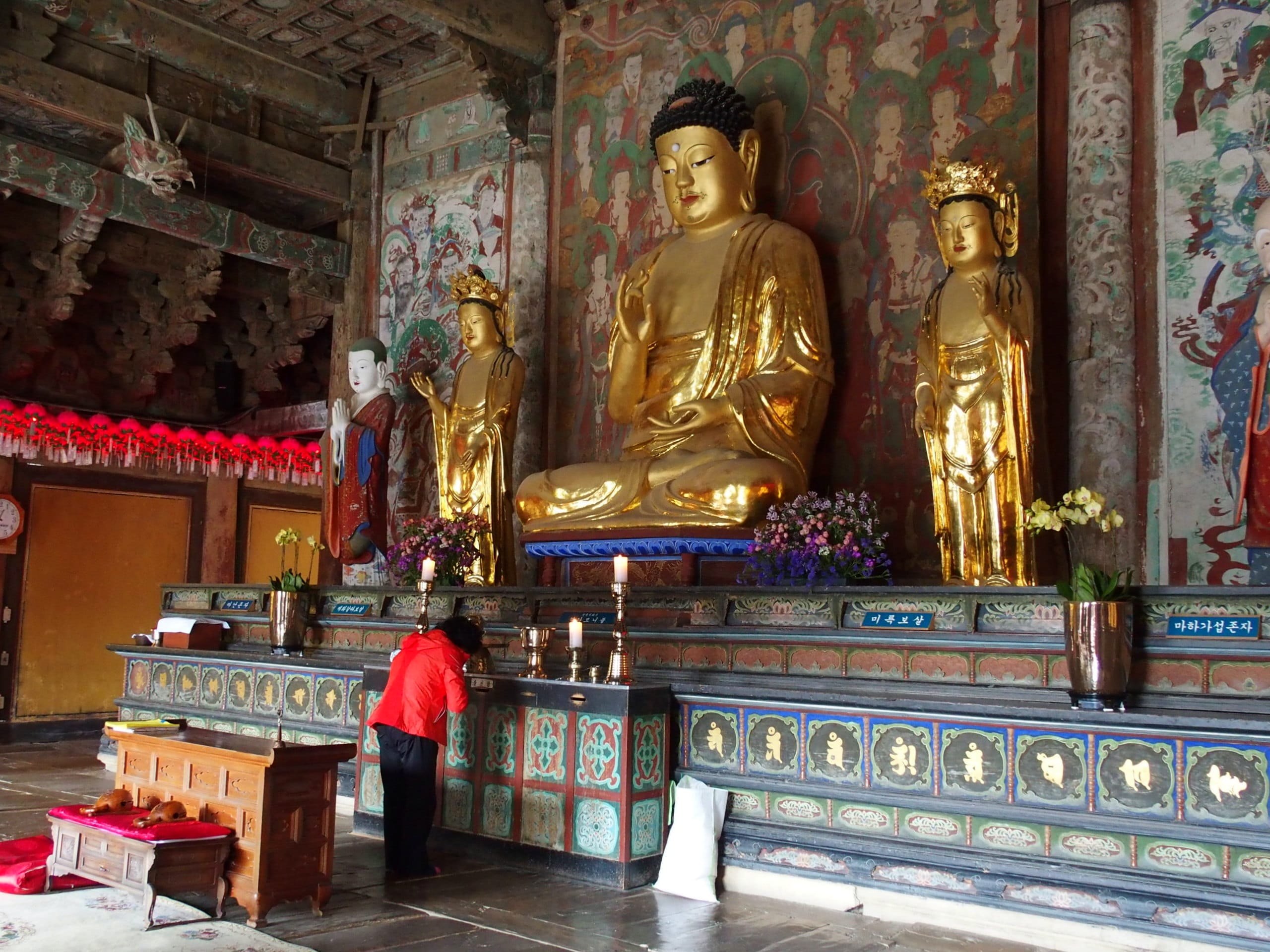 Il comprend une série de superbes bâtiments de bois peints construits sur des terrasses de pierre surélevées. Son enceinte est divisée en trois parties – Birojeon (le hall du Bouddha Vairocana), Daeungjeon (le hall du grand éveil) et Geungnakjeon (le hall du bonheur suprême). Ces zones et les terrasses en pierre ont été conçues pour représenter le pays du Bouddha.