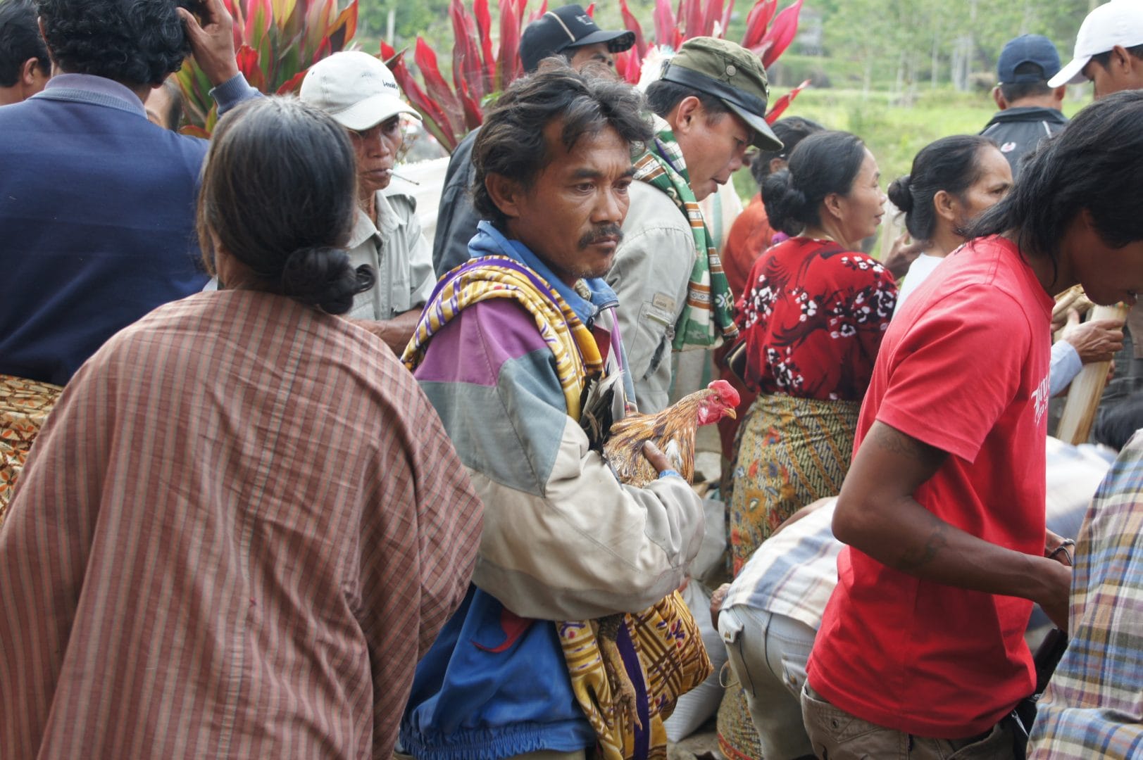 Nous repartons avant que les combats ne cessent pour éviter les sorties de "matchs" où les propriétaires gagnants repartent avec fierté, leur coq sous le bras, et les perdants désespérés s'enivrent ou se bagarrent. En sortant, nous passons devant les pêcheurs qui viennent vendre leurs poissons à l'occasion de ces rassemblements.