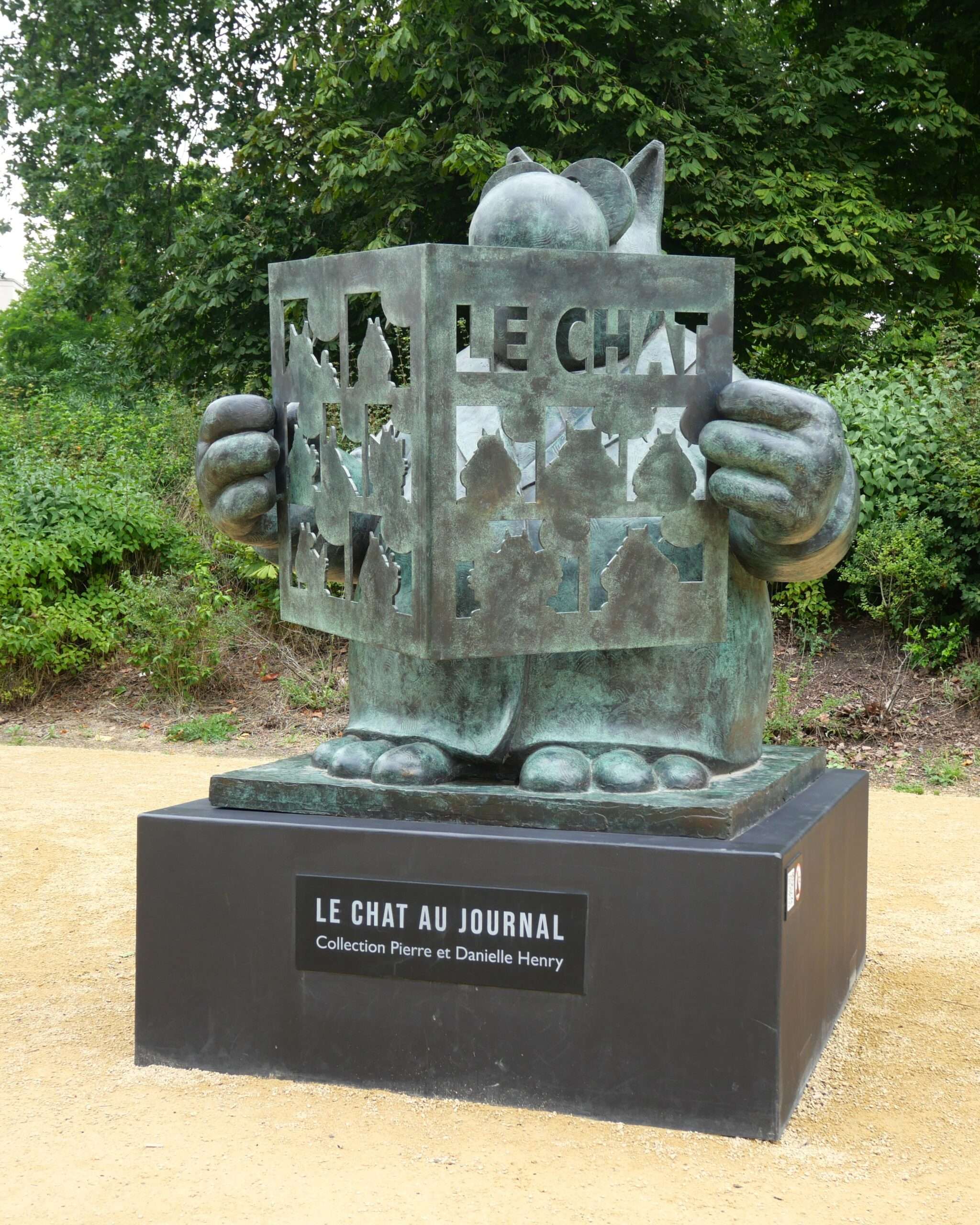 Ce sont donc 22 sculptures monumentales en bronze du Chat de Geluck qui sont présentées gratuitement dans le parc pendant quatre mois (jusqu’au 10 septembre 2023) et s’offrent avec plaisir aux regards et aux caresses de leurs admirateurs. Les promeneurs sont manifestement touchés par l’humour, l’ironie et la poésie de ce chat facétieux.