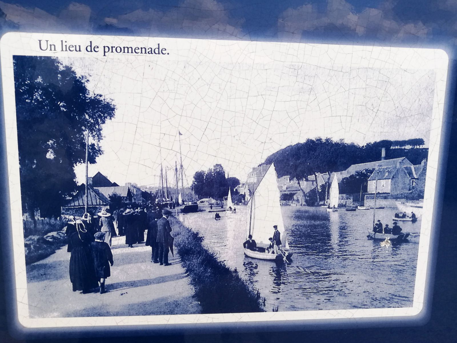 Comme l’illustrent des panneaux sur le chemin du halage, c’est là que commença en 1840 la mise en chantier d’une digue de terre qui permettrait aux navires d’être remorqués depuis la berge par des chevaux. Elle offrait déjà à l’époque un lieu de promenade privilégié. Désormais, depuis le début du 20ᵉ siècle, le quai Neuf accueille les vedettes de croisière sur l’Odet.