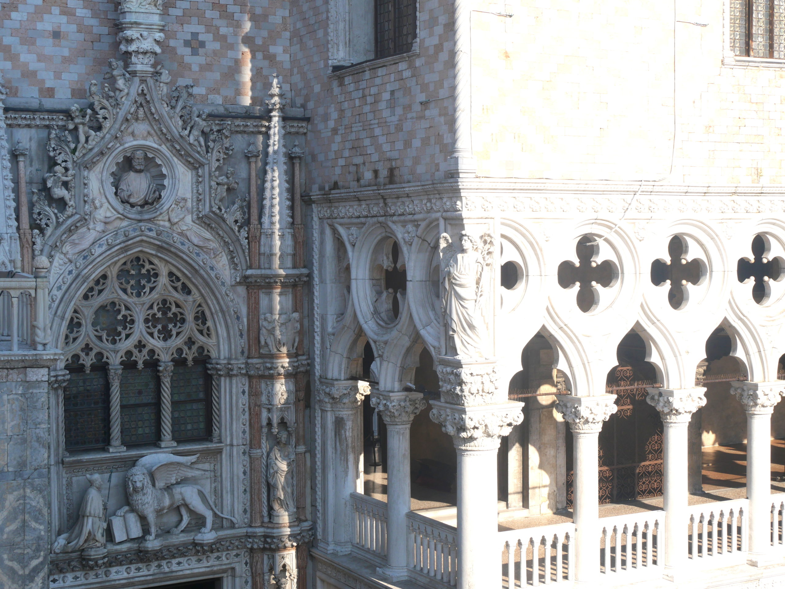 J’ai quand même pu accéder au musée de la Basilique, d’où on a une vue magnifique de l’intérieur de la Basilique ! On peut y voir des maquettes qui retracent l’histoire de la Basilique et les magnifiques statues de bronze originales des chevaux dont les copies trônent sur la terrasse de la façade de la Basilique. De là, on a une vue incroyable sur la place Saint Marc, la piazzetta et la place entourée de ses trois grands palais, les » anciennes et les nouvelles Procuratie » dont les arcades abritent le musée Correr , mais aussi les plus beaux magasins, cafés et restaurants de la Ville.
