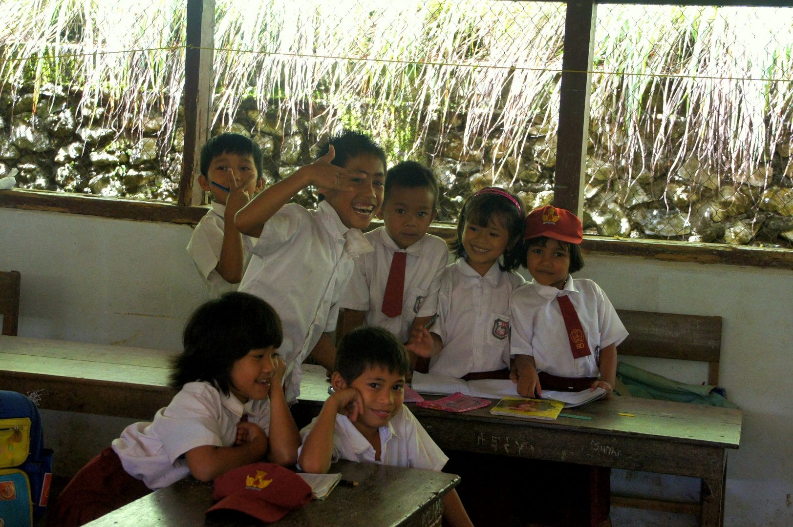 En Indonésie, chaque école a son propre uniforme. Ici, les élèves portent toutes et tous un uniforme rouge et blanc avec une petite cravate et une casquette. Ils sont vraiment très mignons !